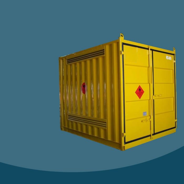 The container is also equipped with a ventilation system that ensures proper air circulation and prevents the buildup of fumes. The container is ideal for storing hazardous materials such as chemicals, paints, and other flammable liquids.